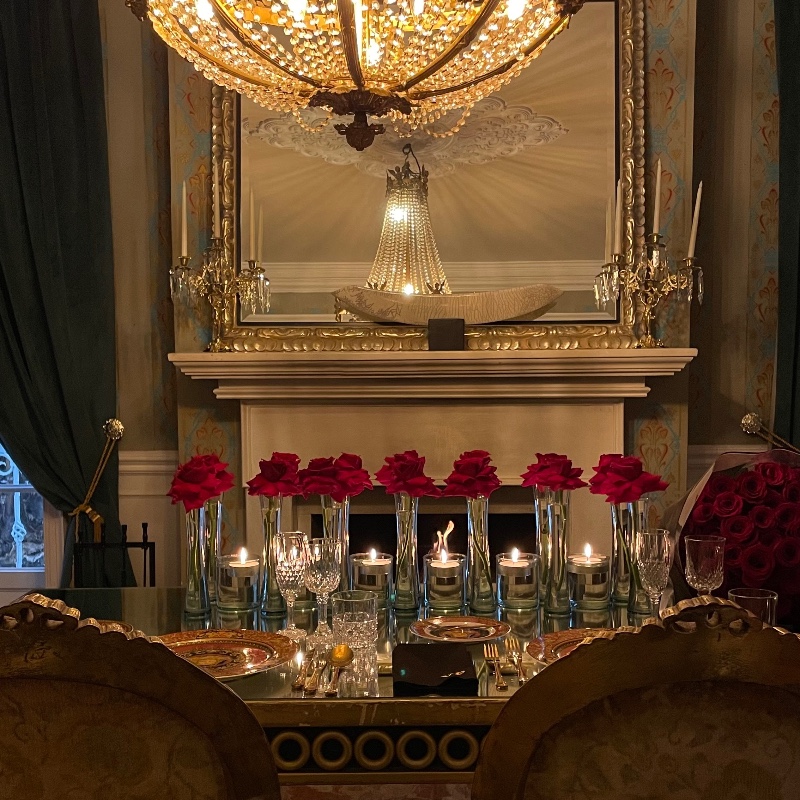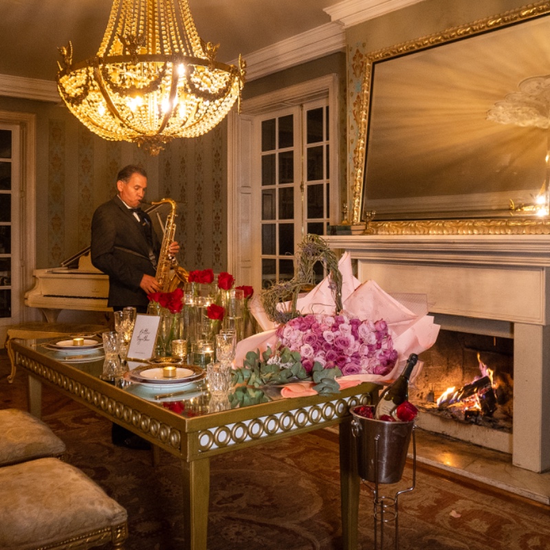 Imagine una espectacular Mansión. Dentro de ella, un elegante Salón Barroco con cena romántica privada, mayordomo, músico concertista y un chef ejecutivo cuidarán hasta el último detalle.